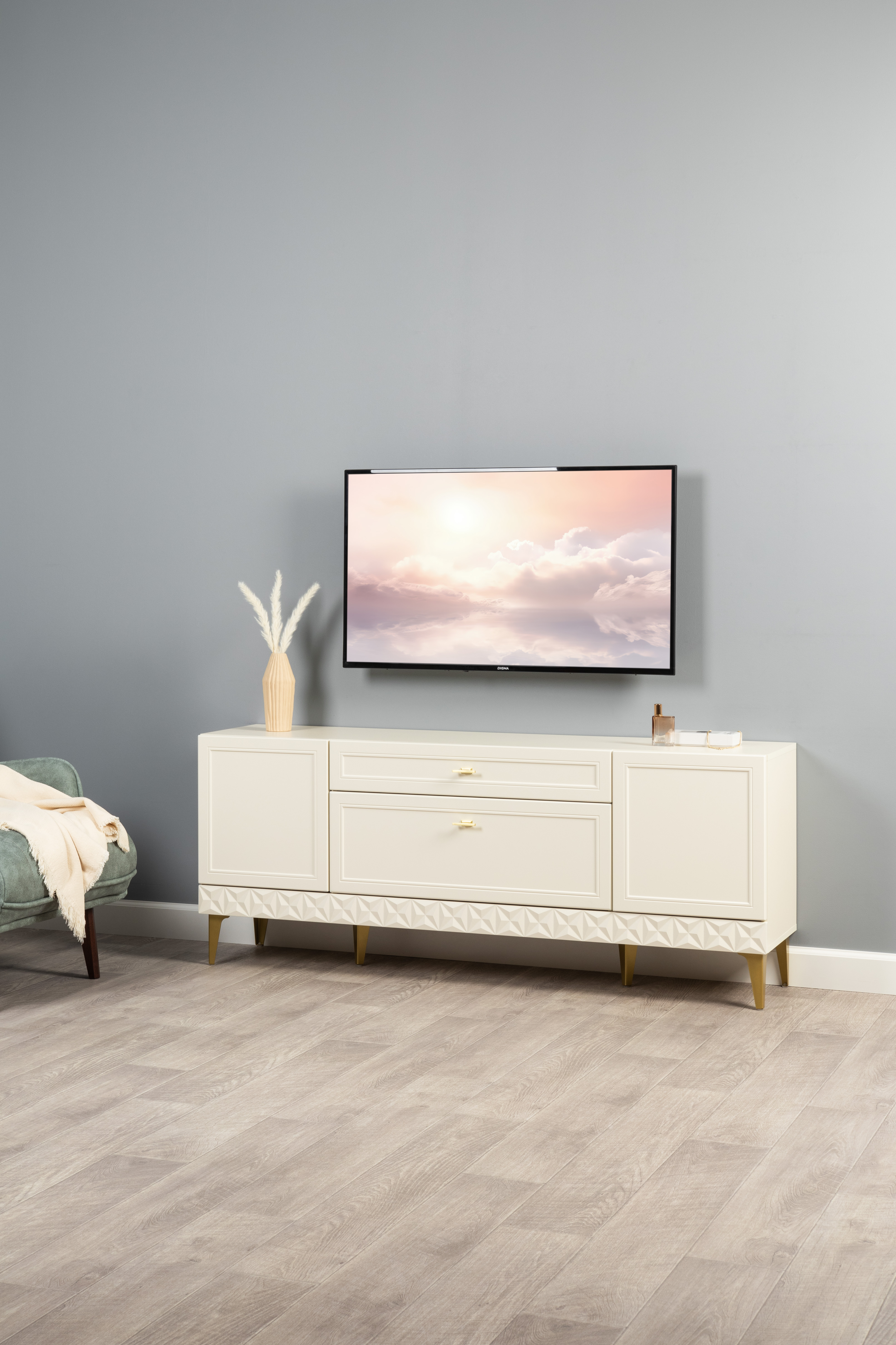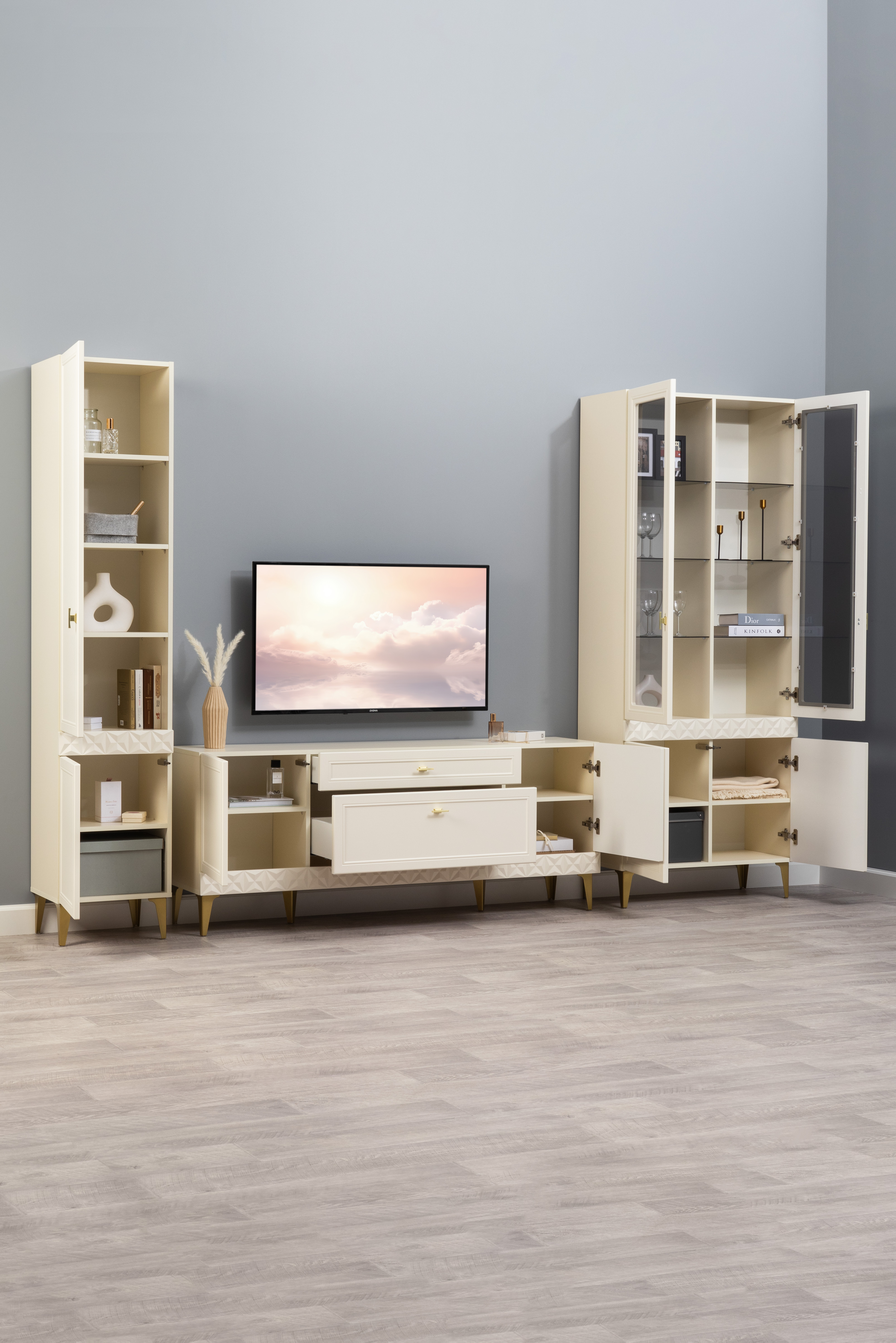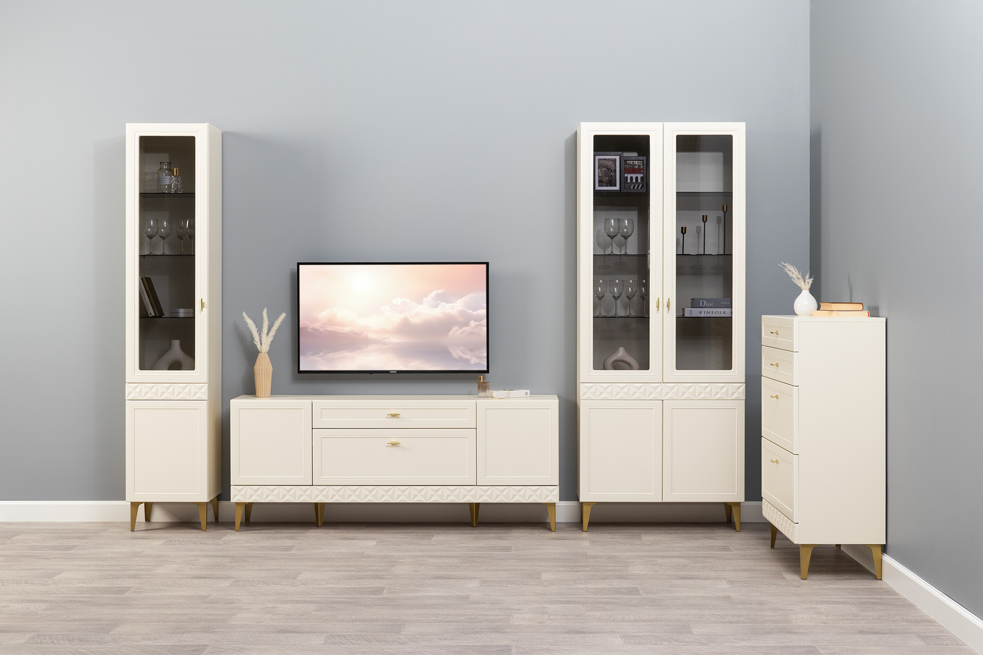 Гостиная Марион композиция 2 слоновая кость С341 PE, слоновая кость 6898 ПВХ, белый PE шагрень (собирается на любую сторону)
