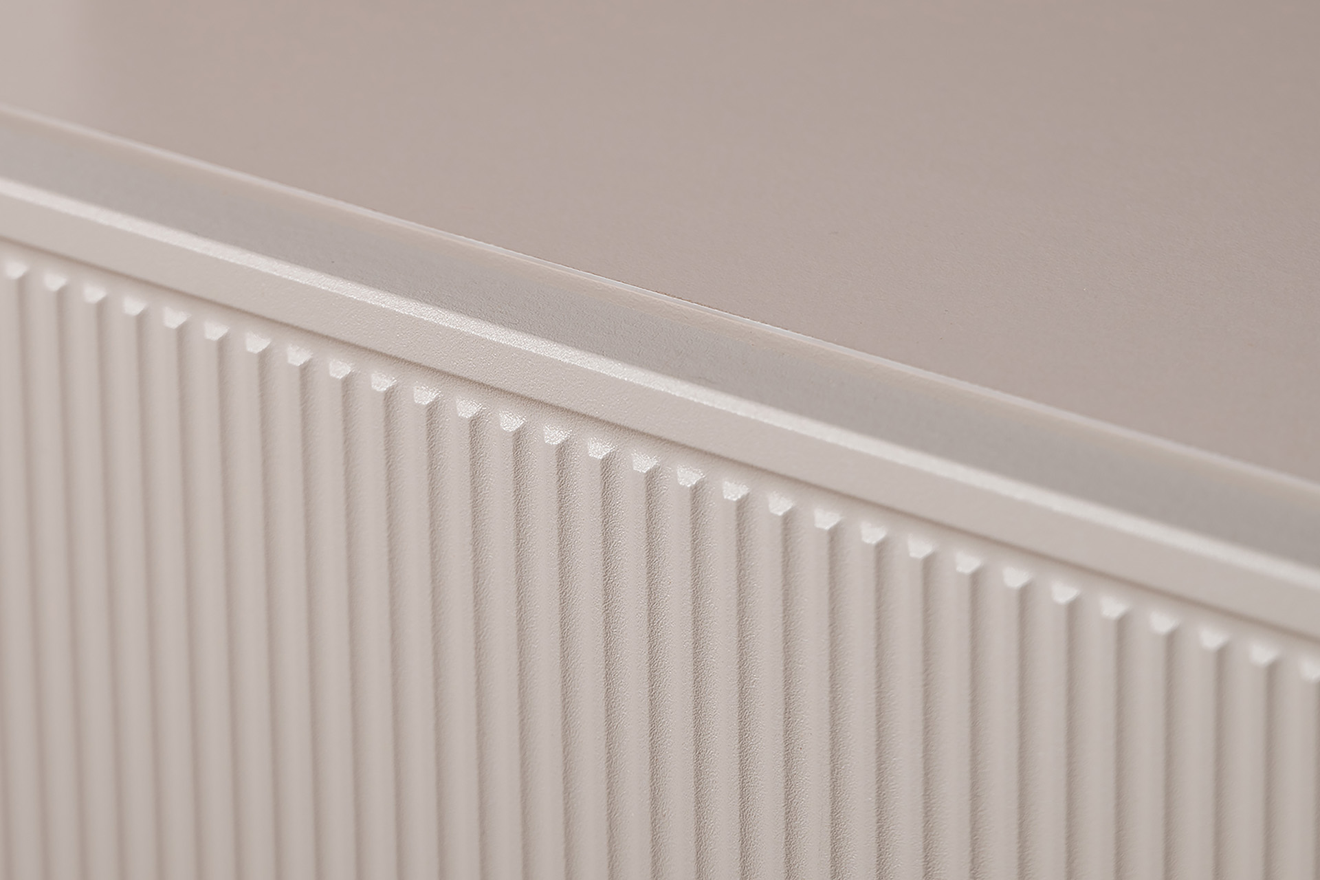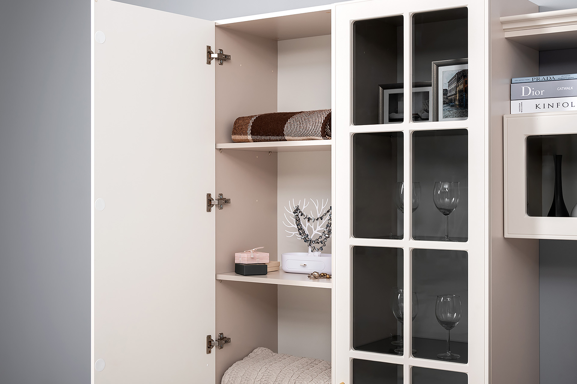 Гостиная Ричфорд композиция 1 без карнизов, кашемир 5981 BS, моно керамика D166-2 ПВХ, белый PE шагрень (собирается на любую сторону)