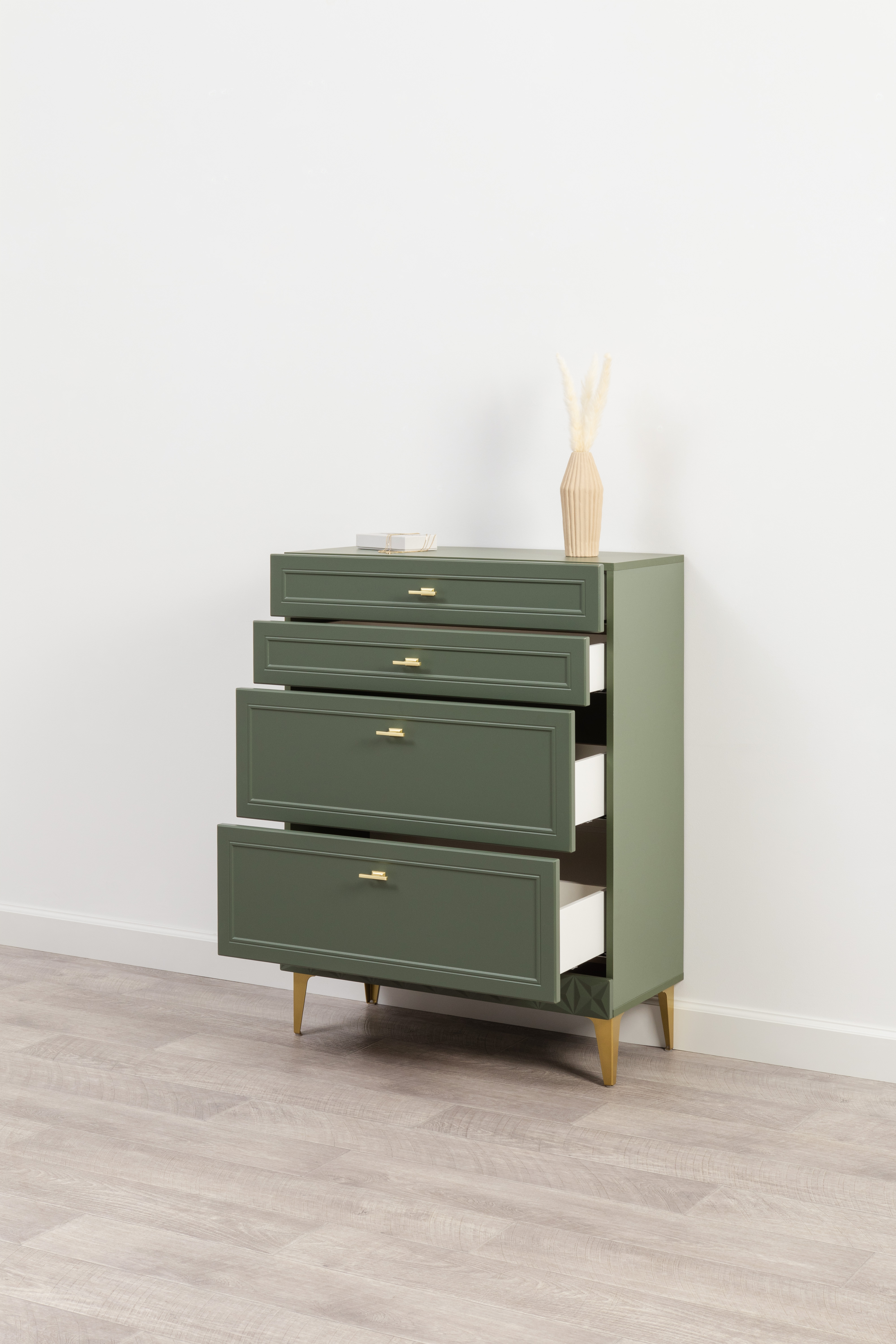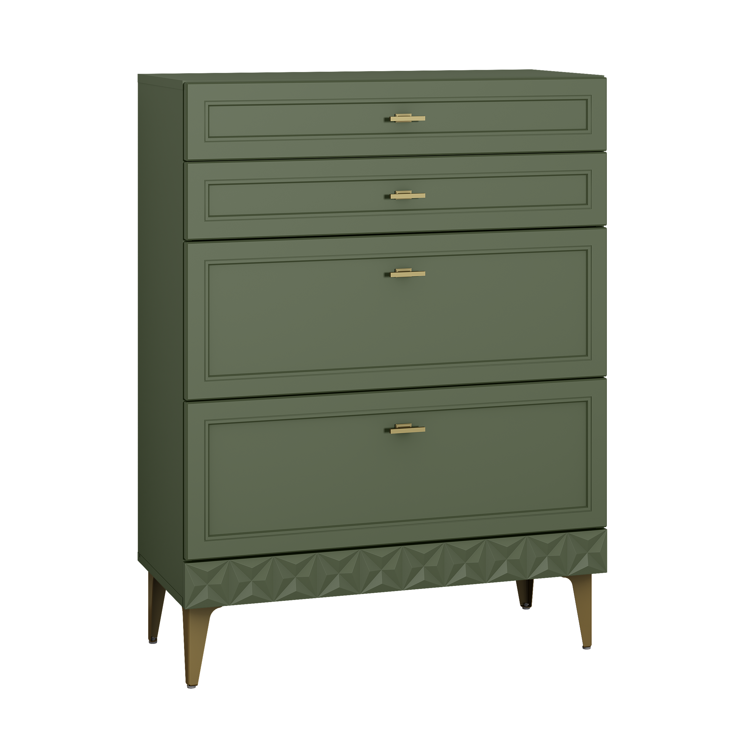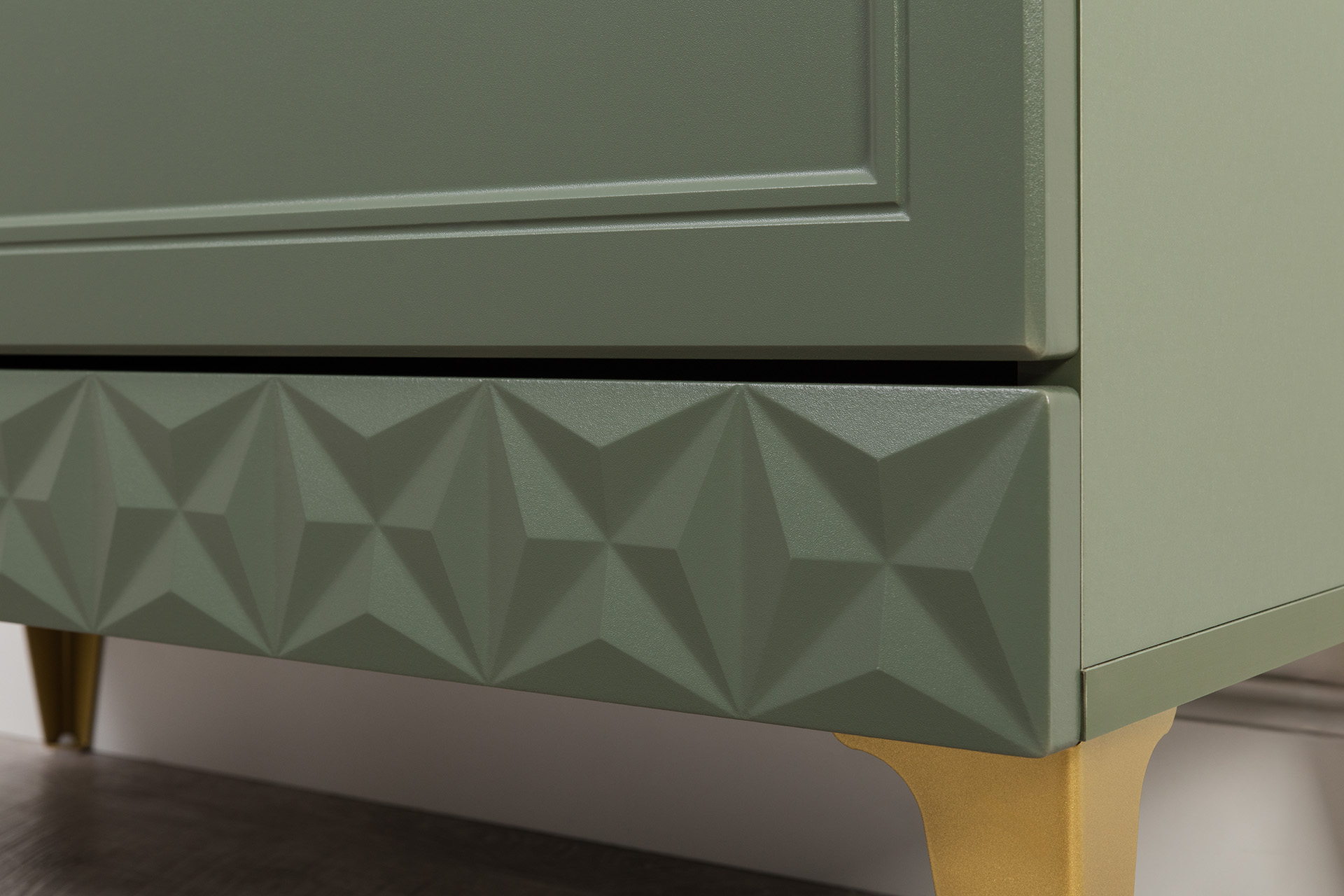 Комод Марион 16.249 дымчатый зеленый K521, олива шагрень AG 1050 ПВХ, белый PE шагрень