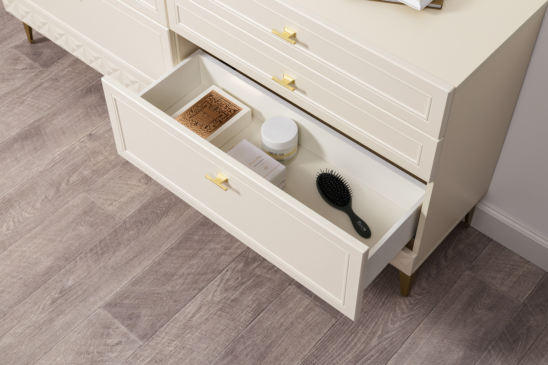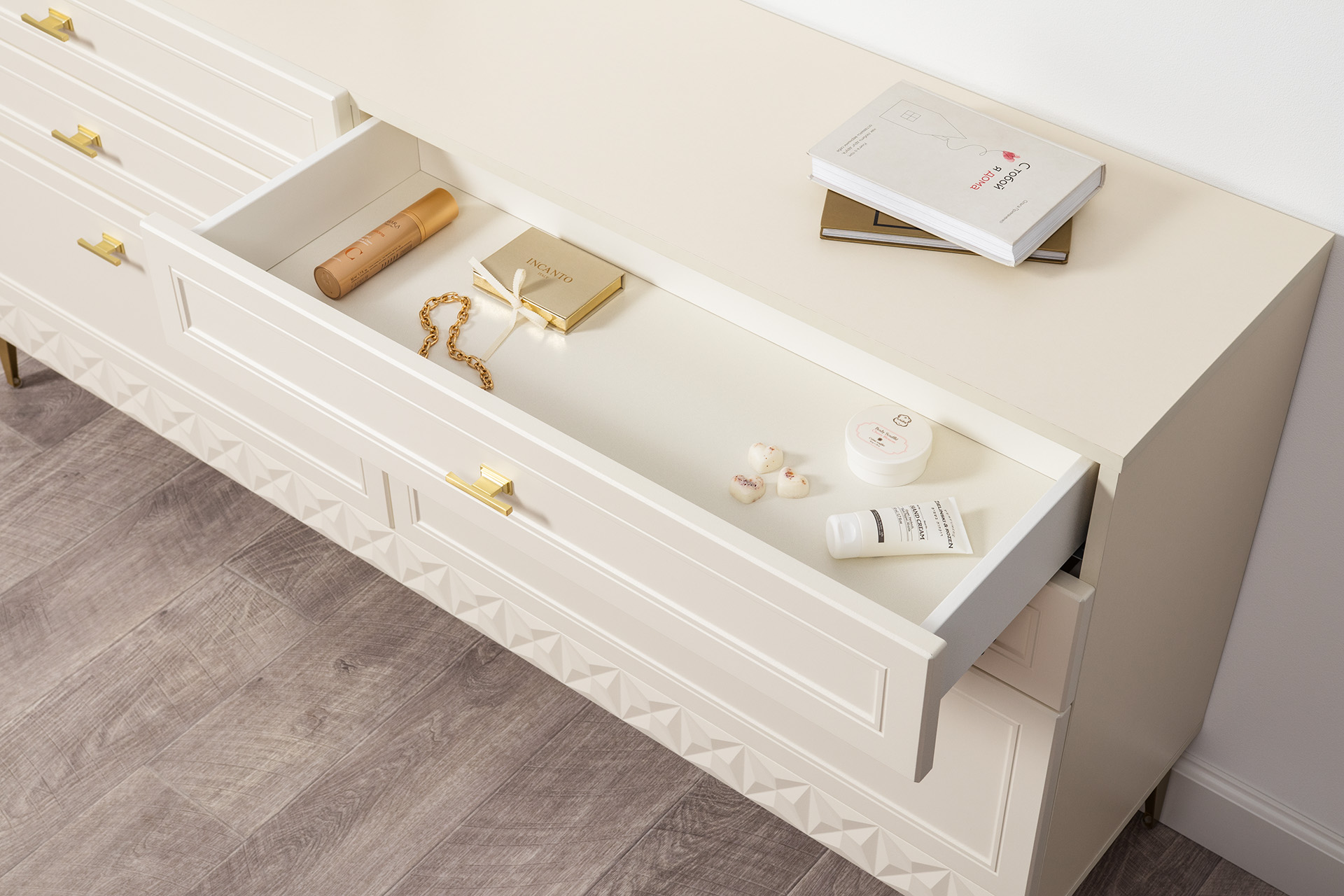 Комод Марион 16.256 Слоновая кость С341 PE, Слоновая кость 6898 ПВХ, Белый PE шагрень