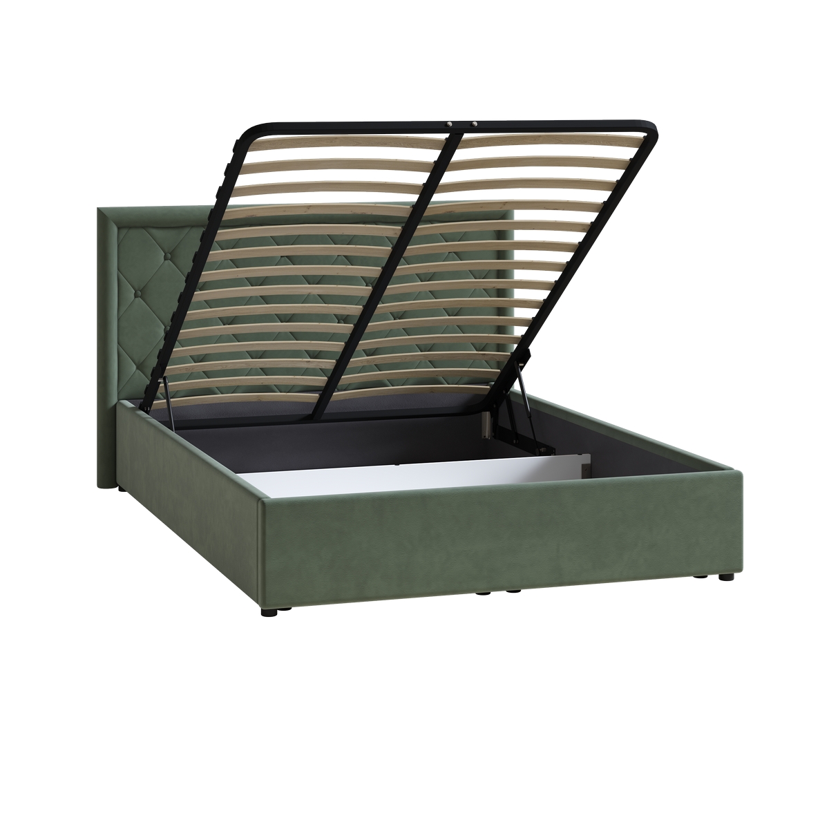 Кровать Марион 140 велюр OCEAN 012 темно-зеленый с ортопедическим основанием и подъемным механизмом (спальное место 140 х 200)