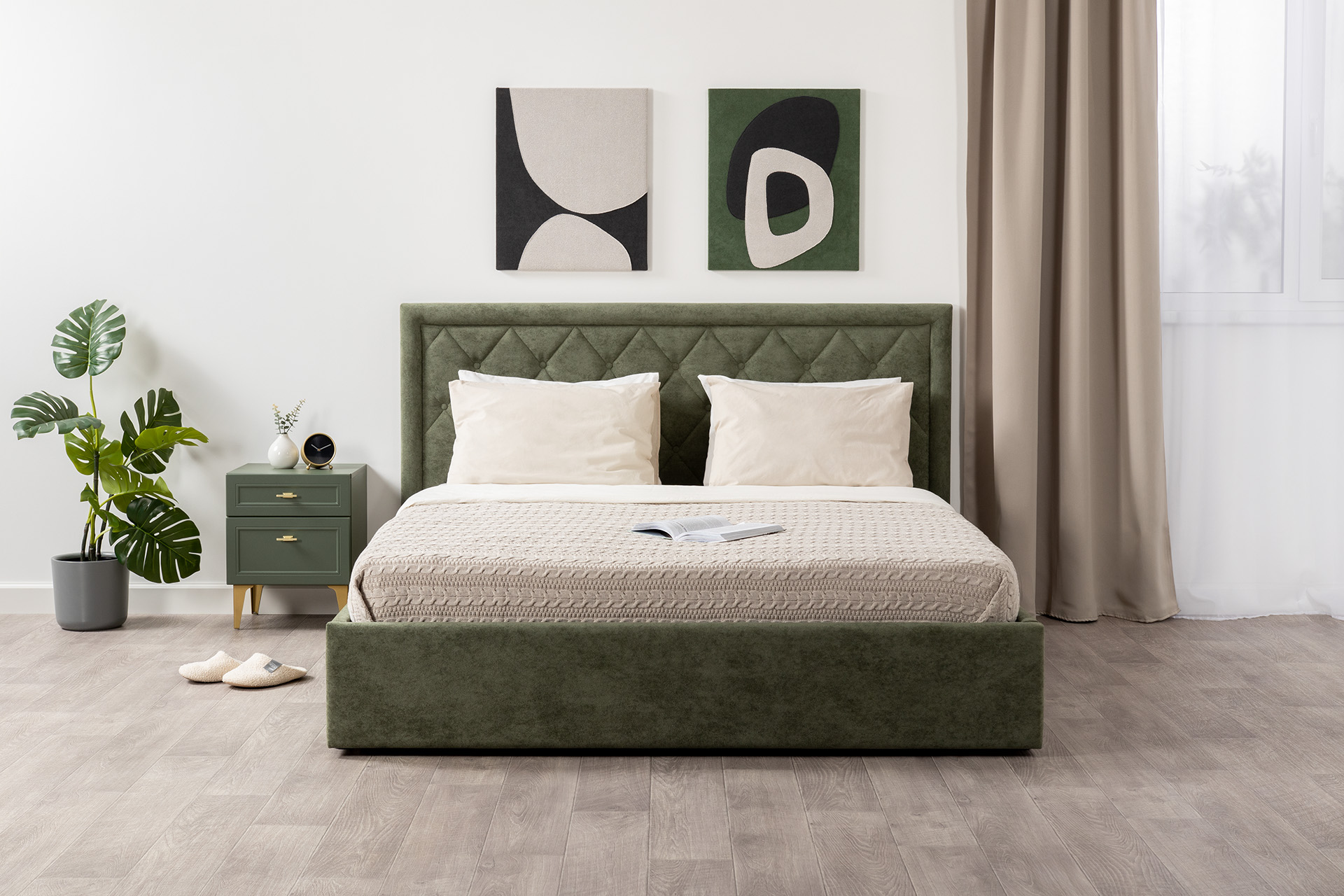 Кровать Марион 160 велюр OCEAN 012 темно-зеленый с ортопедическим основанием и подъемным механизмом (спальное место 160 х 200)