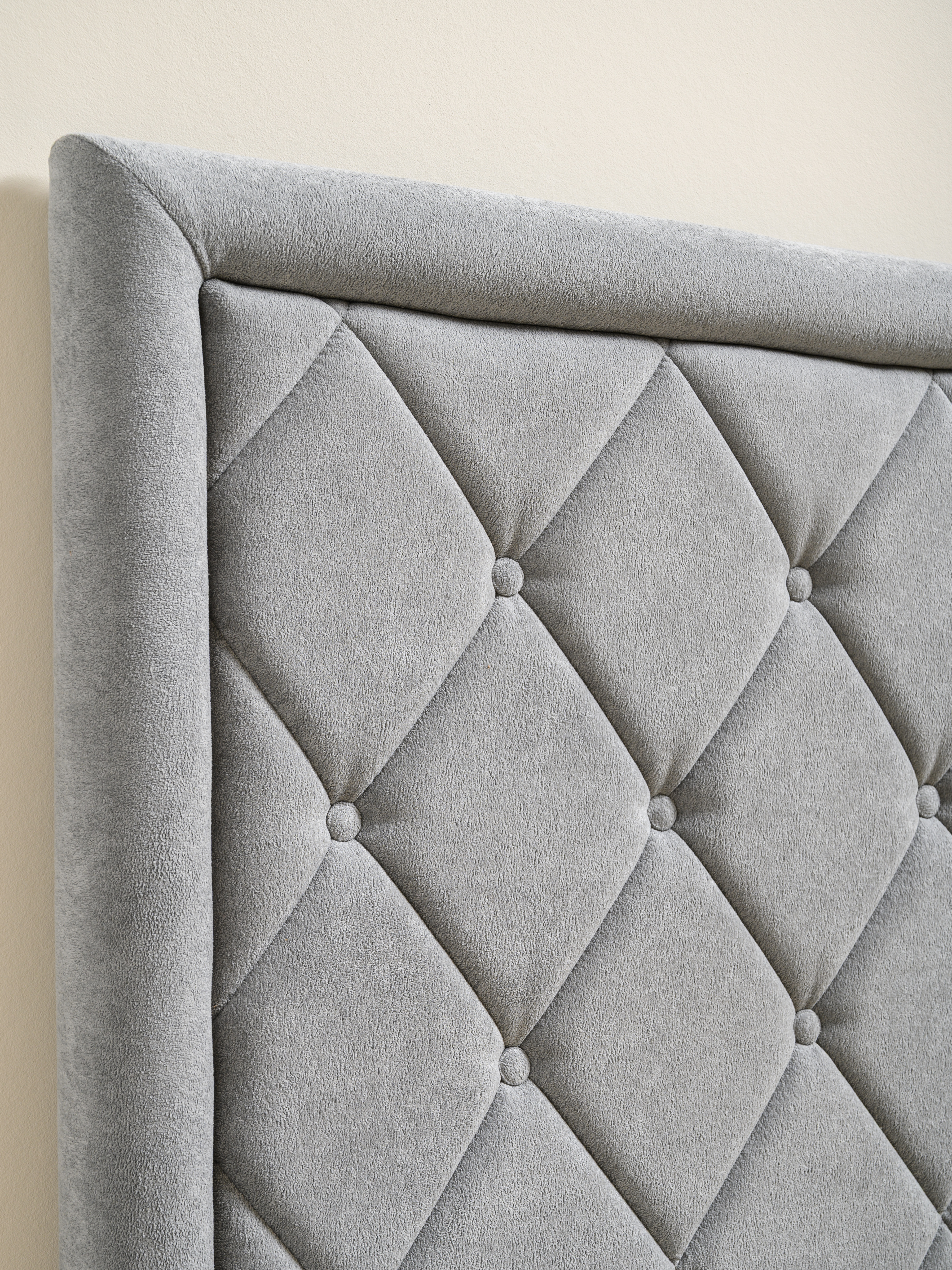 Кровать Марион — это идеальное сочетание стиля и комфорта. Элегантное изголовье оформлено стежкой в виде классической каретной стяжки, украшенной декоративными пуговицами, что придаёт изделию выразительный и утончённый вид. По всему периметру кровати проходит аккуратный валик, подчеркивающий геометрию и завершённость формы.
