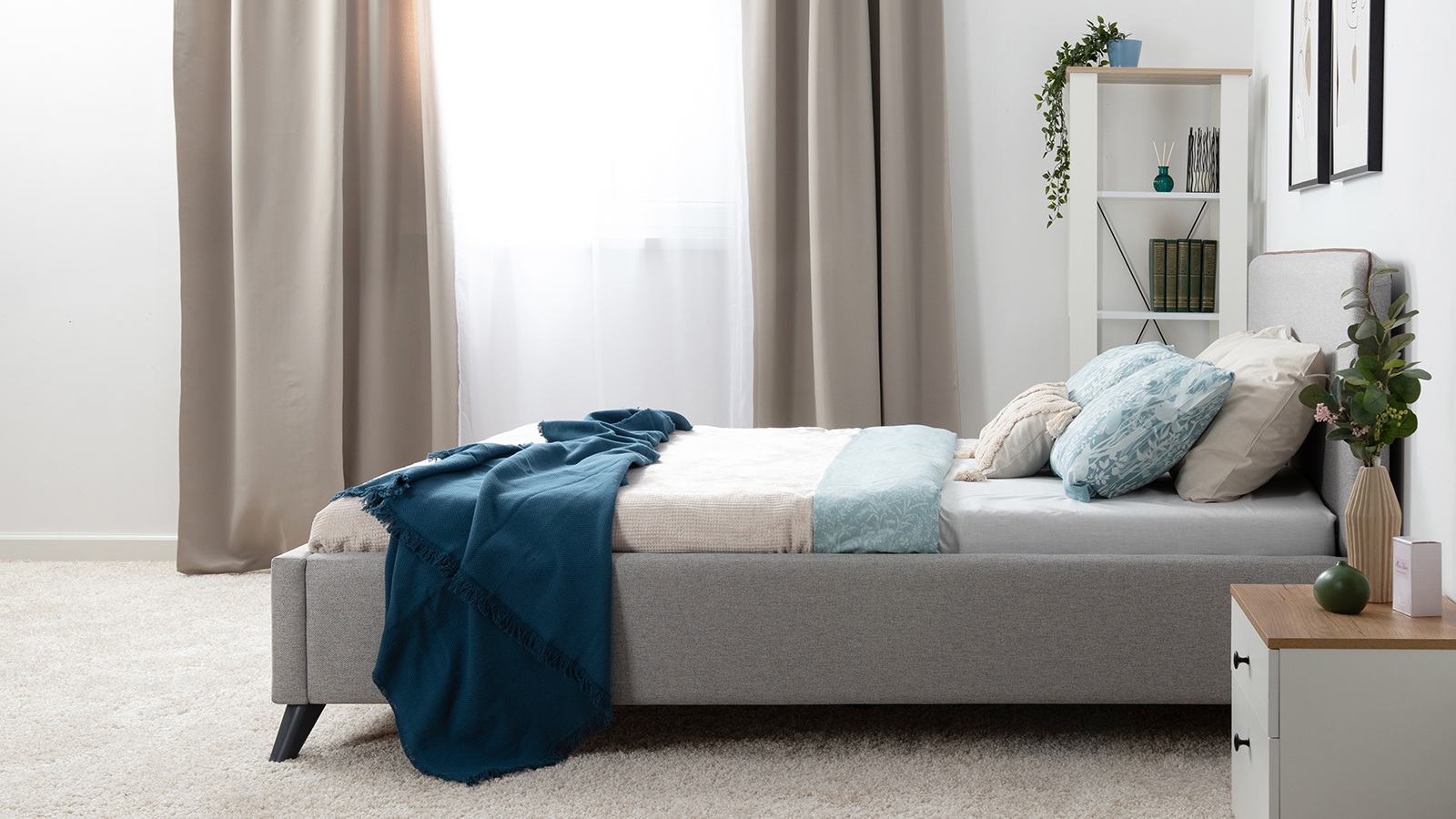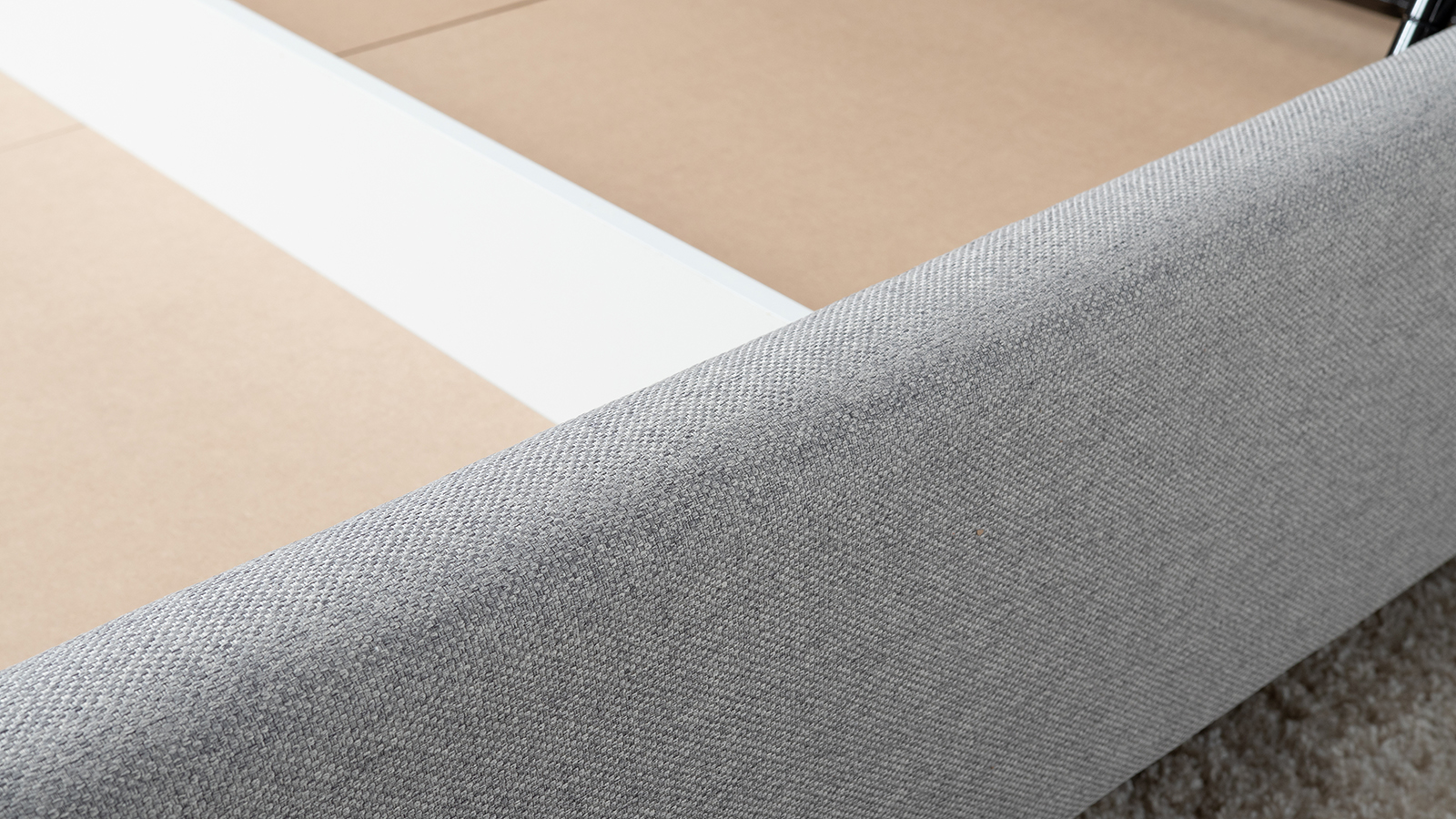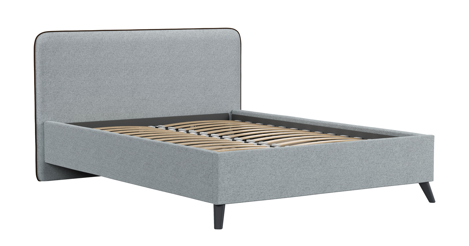 Основание кровати укомплектовано матрасодержателями. Жесткое кроватное дно из МДФ 6 мм. Задняя стенка изголовья выполнена в тех. ткани (спанбонд).