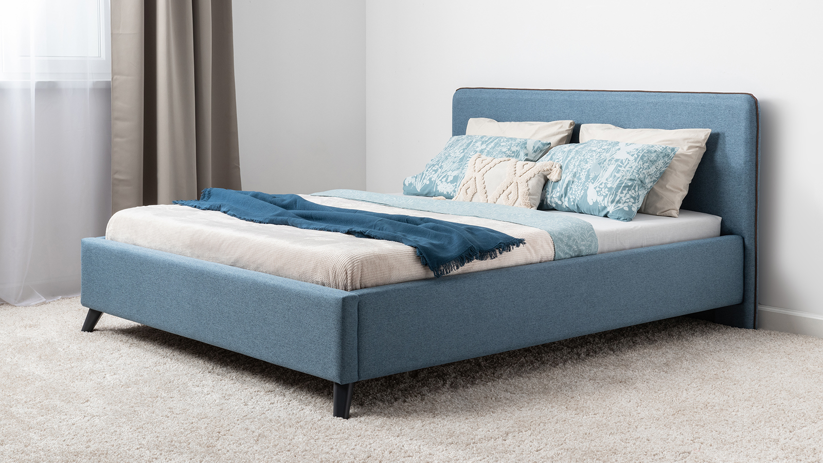 Лаконичный дизайн, гладкая и приятная на ощупь рогожка, широкий выбор пастельных оттенков, высокие опоры — модная кровать МИА порадует сторонников скандинавского стиля.