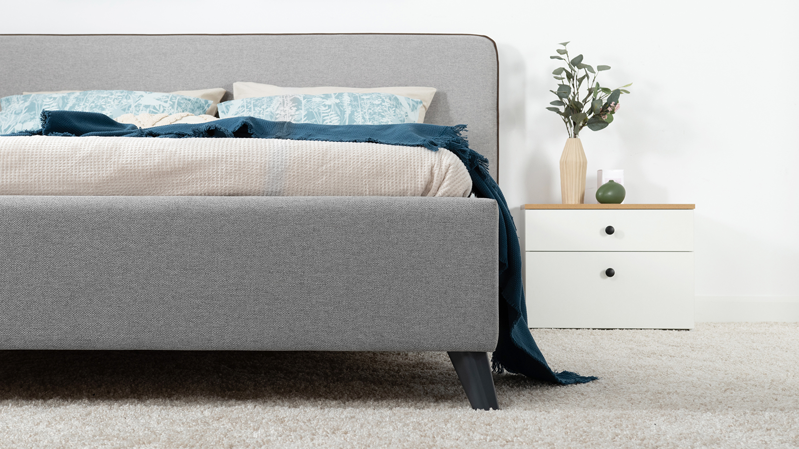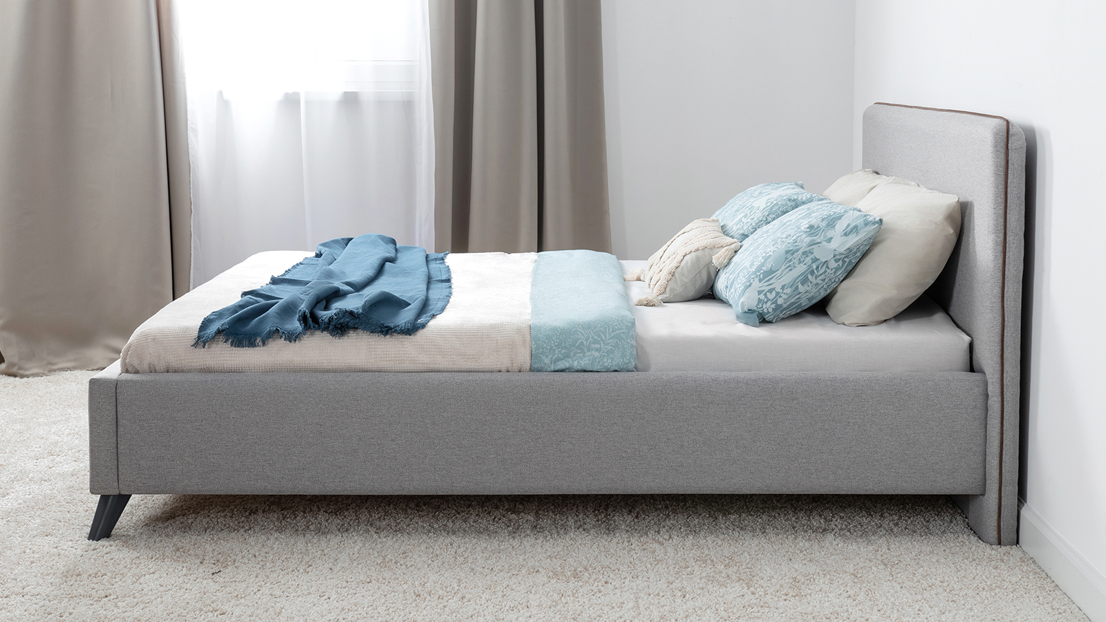 Лаконичный дизайн, гладкая и приятная на ощупь рогожка, широкий выбор пастельных оттенков, высокие опоры — модная кровать МИА порадует сторонников скандинавского стиля.