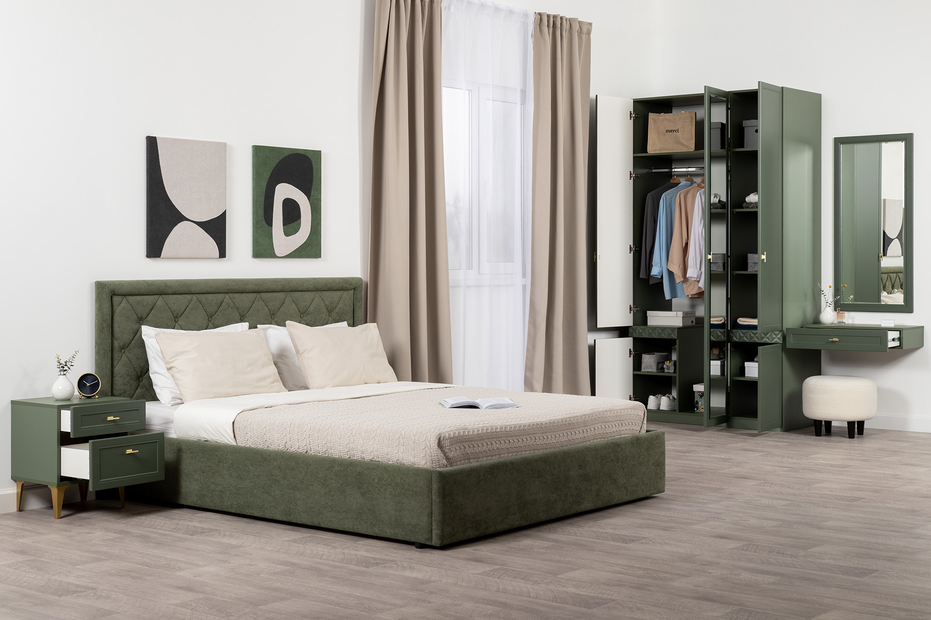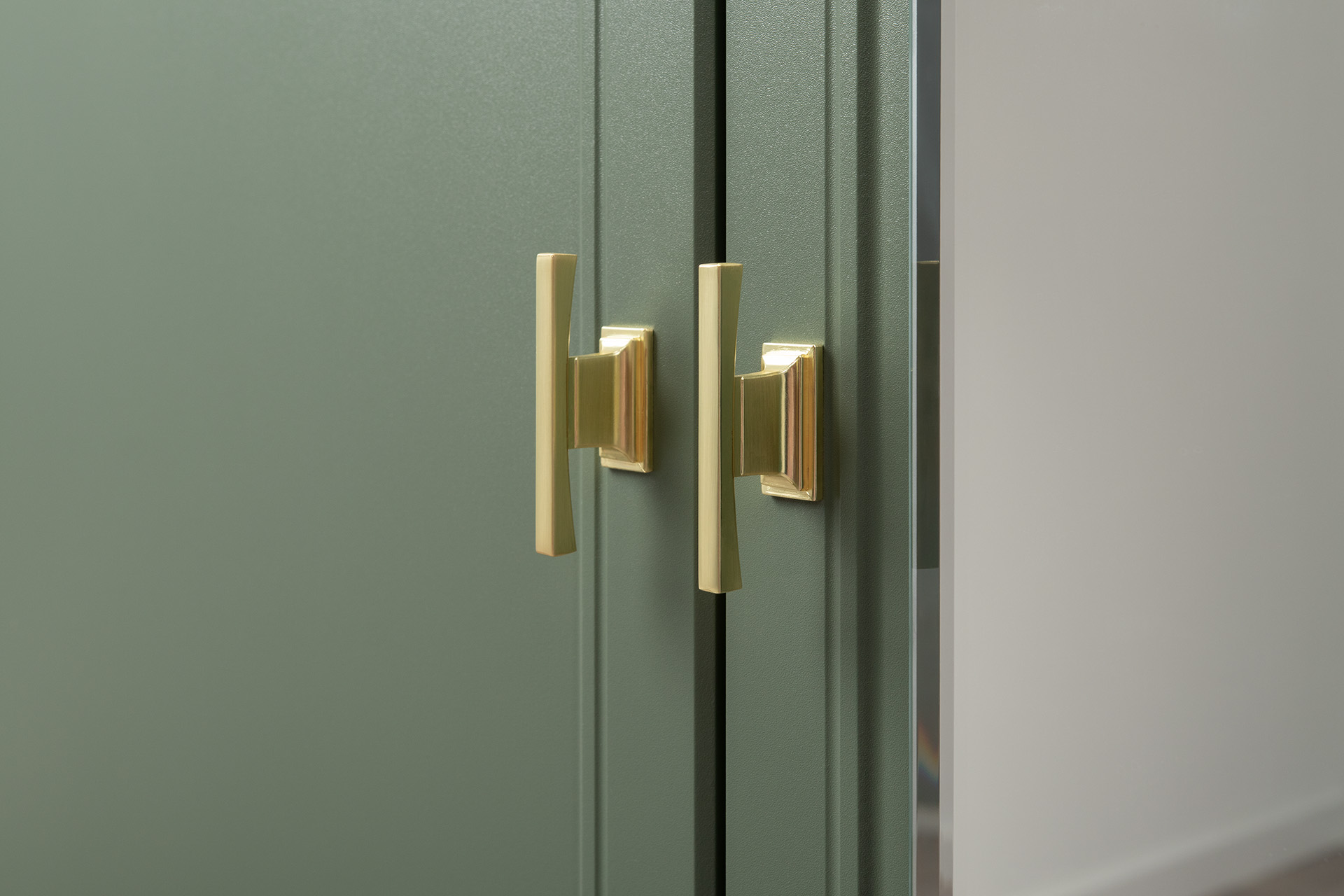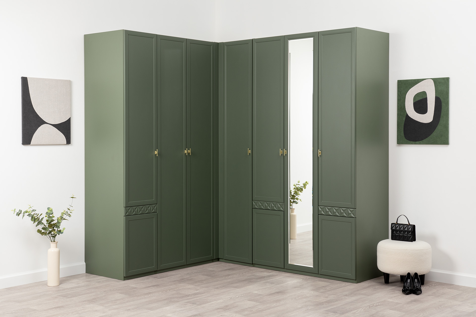 Шкаф для одежды Марион 16.340.03 дымчатый зеленый K521, олива шагрень AG 1050 ПВХ (собирается на любую сторону)