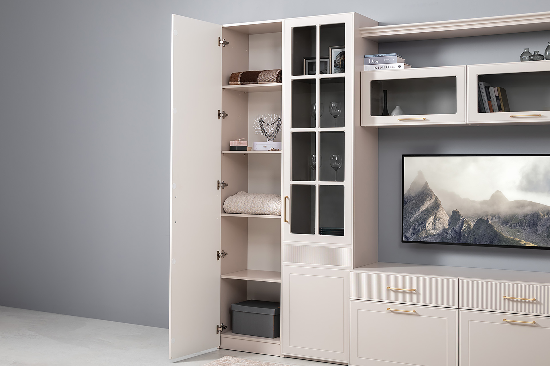 Тумба под ТВ Ричфорд 16.61 кашемир 5981 BS, моно керамика D166-2 ПВХ, белый PE шагрень
