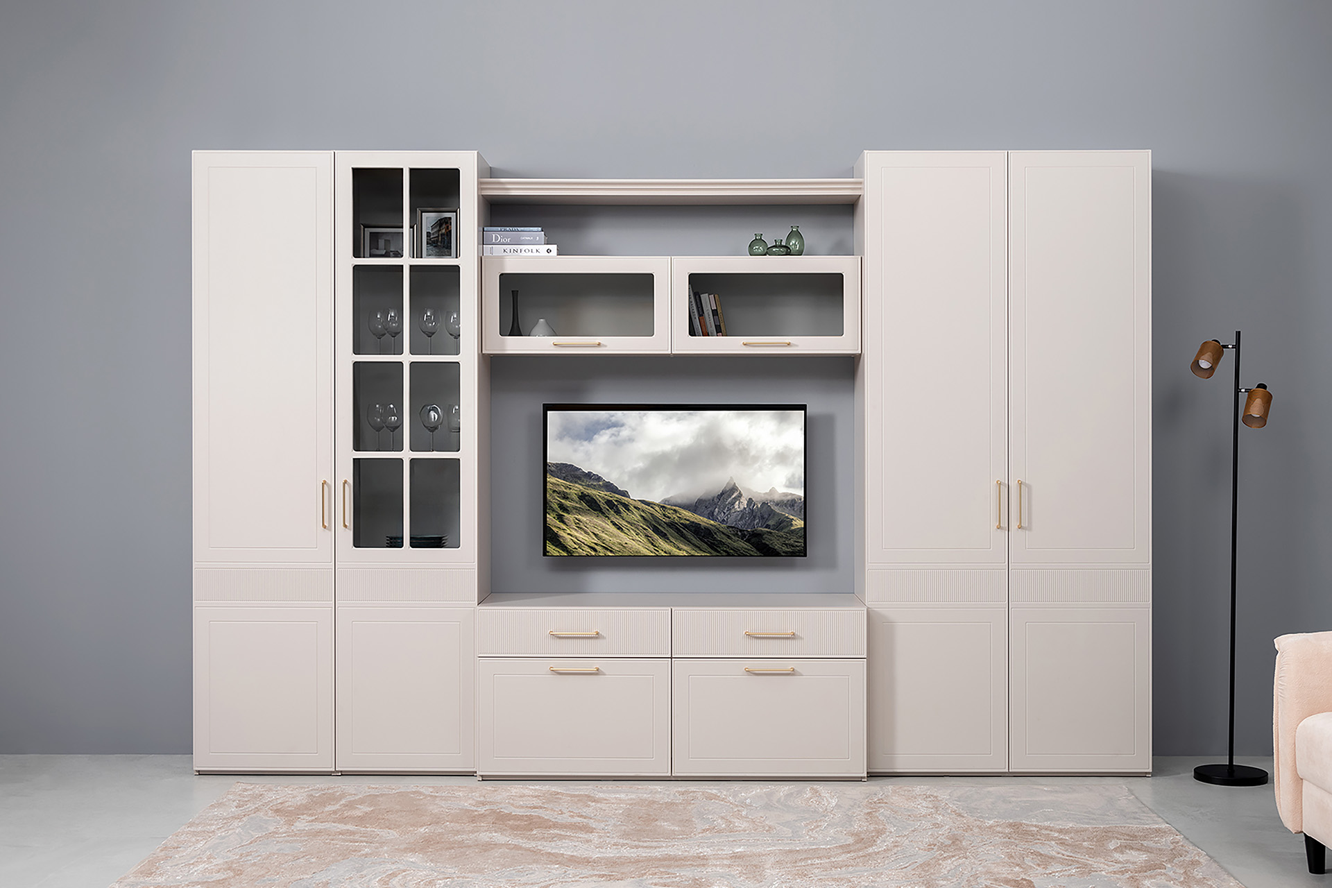Шкаф-витрина Ричфорд 16.396 кашемир 5981 BS, моно керамика D166-2 ПВХ (собирается на любую сторону)