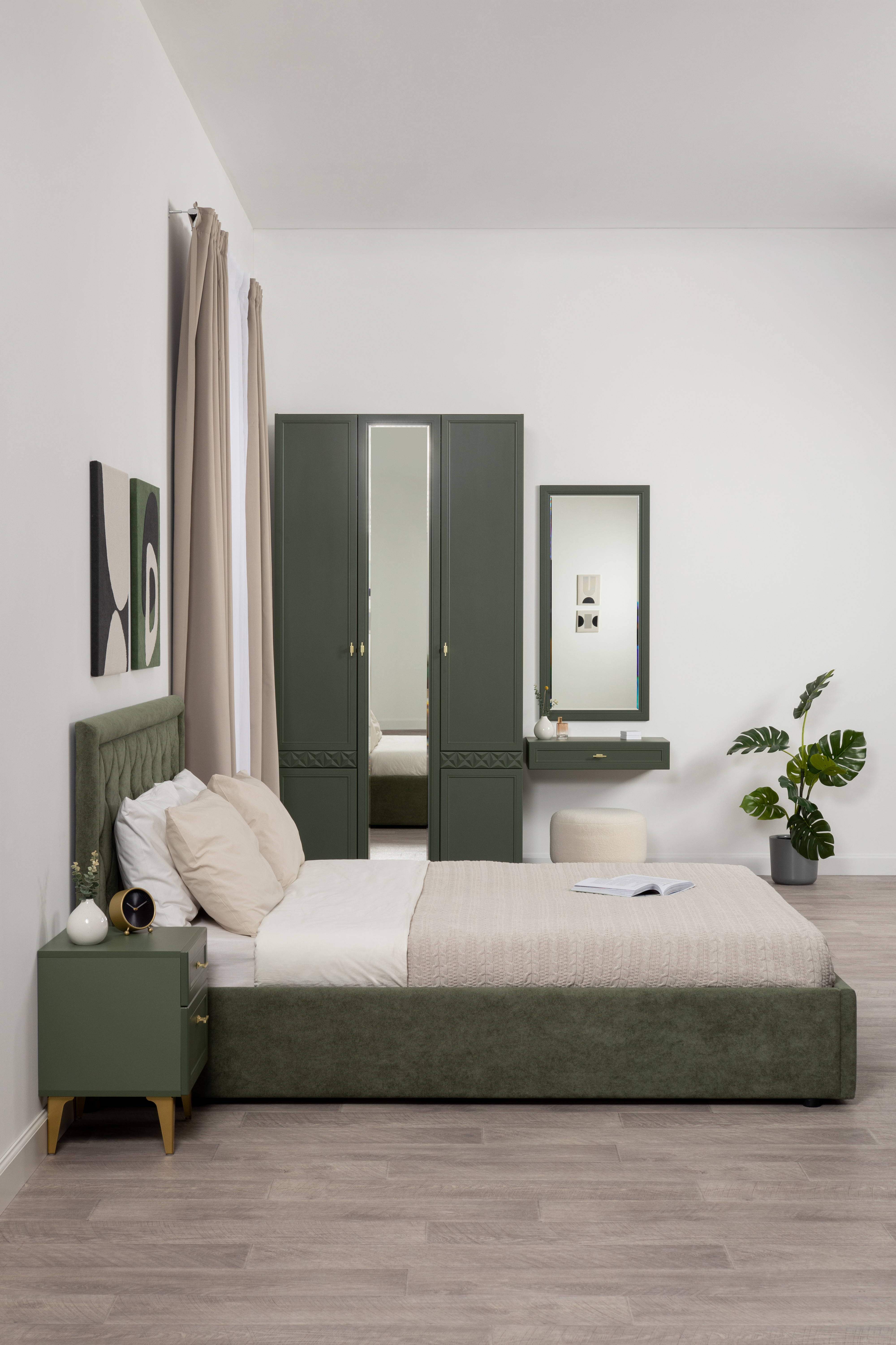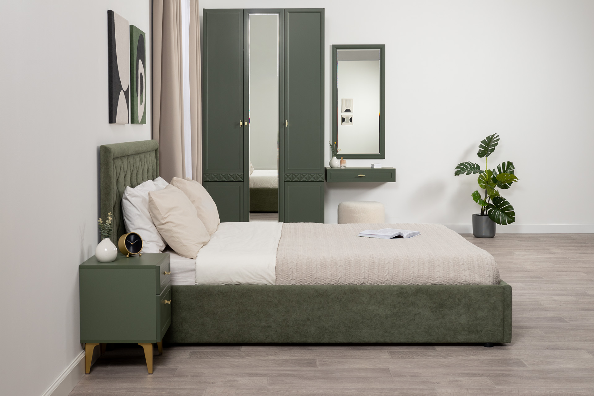 Тумба прикроватная Марион 16.14 дымчатый зеленый K521, олива шагрень AG 1050 ПВХ, белый PE шагрень